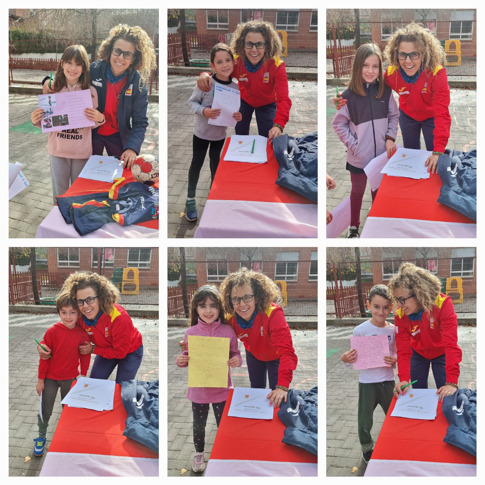 El grupo de 4ºB pudo compartir con Rocío unos minutitos en los que vieron diferentes materiales que se utilizan en distintas disciplinas olímpicas y pudieron hacerse una foto con ella.